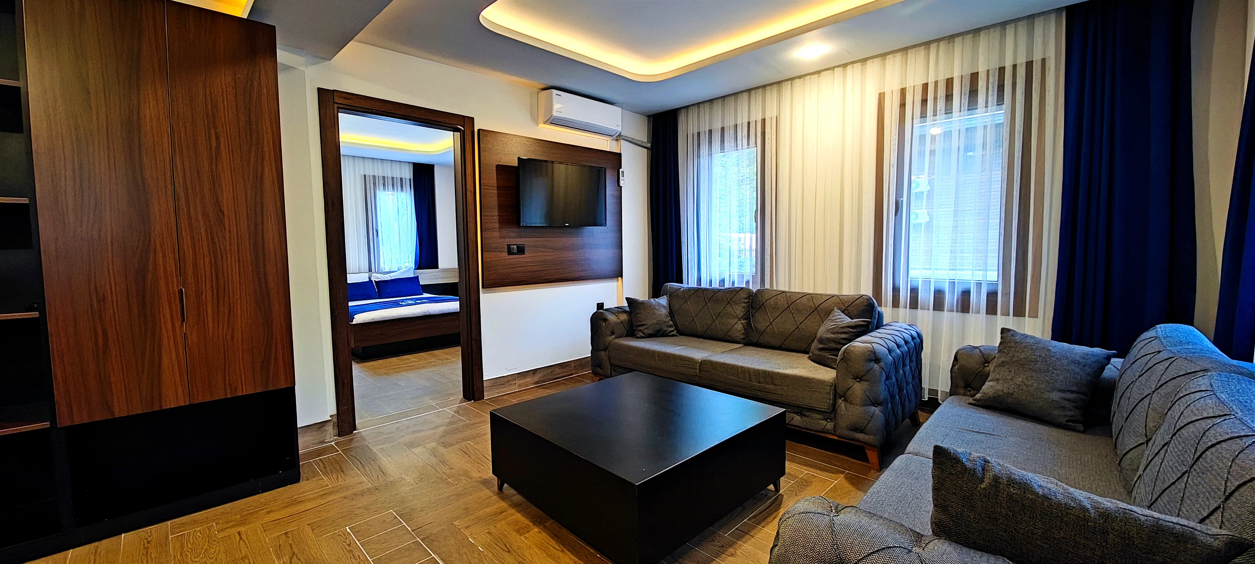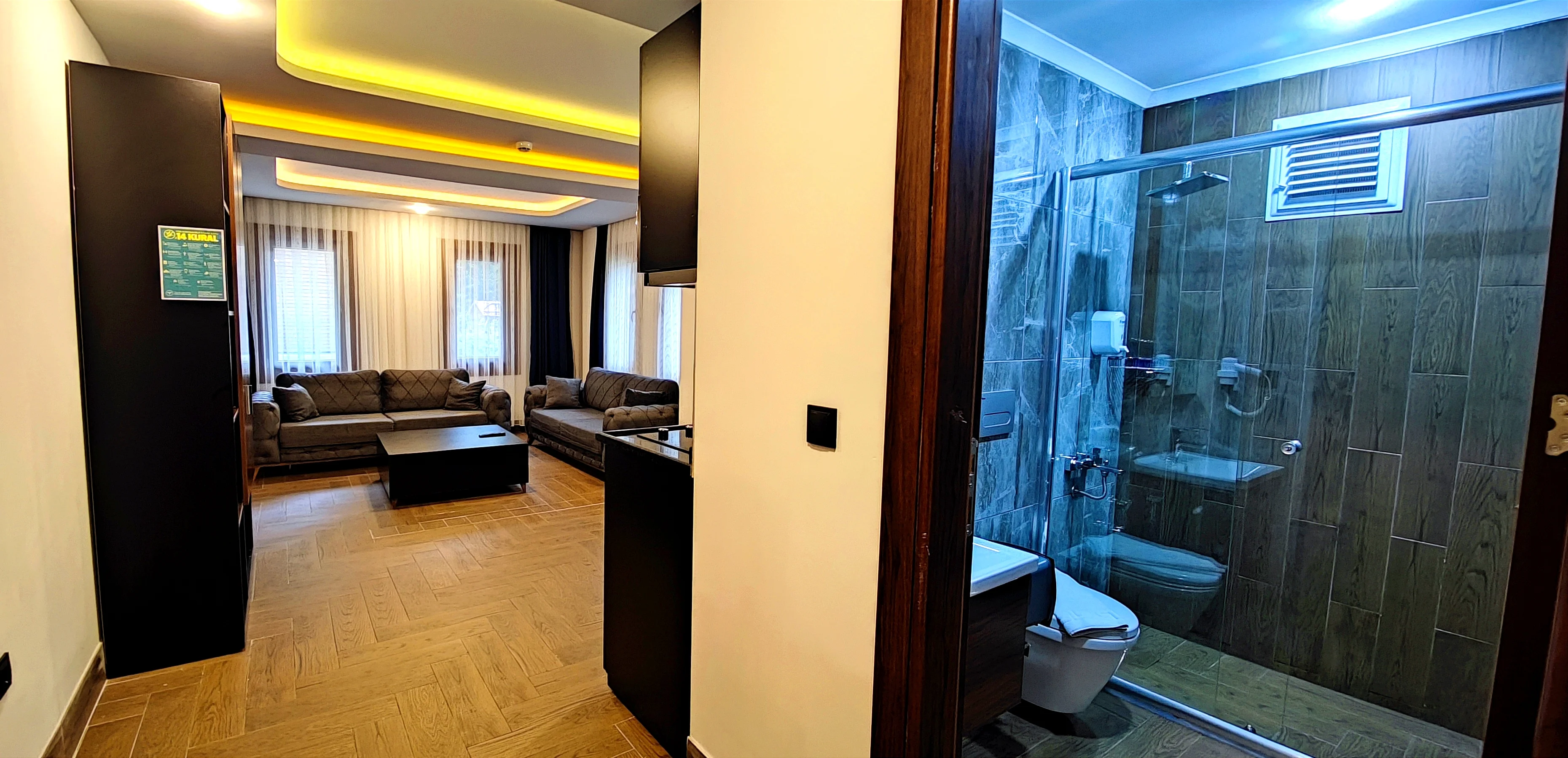 توفر غرفتنا العائلية الاقتصادية 1+1 مساحة مريحة وعملية للعائلات. تصميمها الواسع يضمن إقامة هادئة وممتعة.