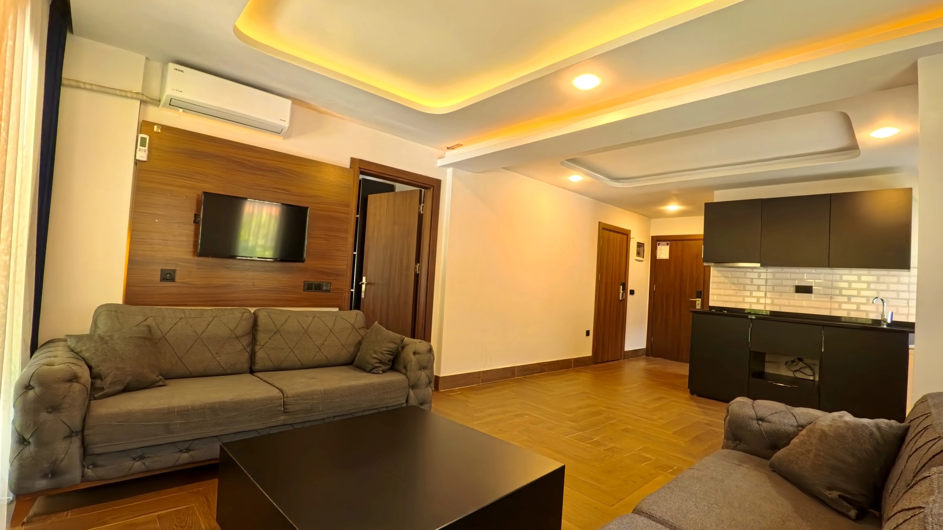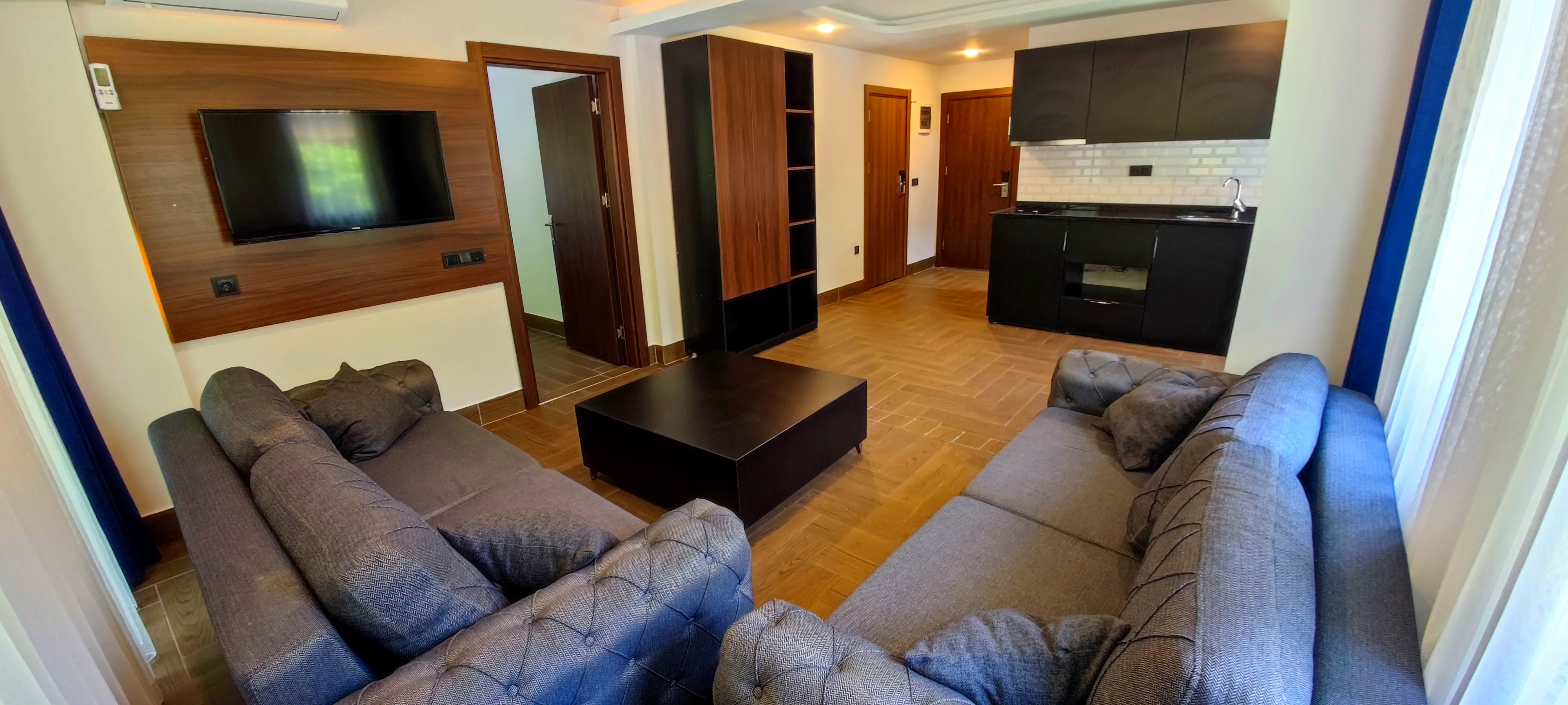 Our Standard 1+1 Family Room offers a spacious and comfortable living area for families. Its airy atmosphere ensures a relaxing stay.