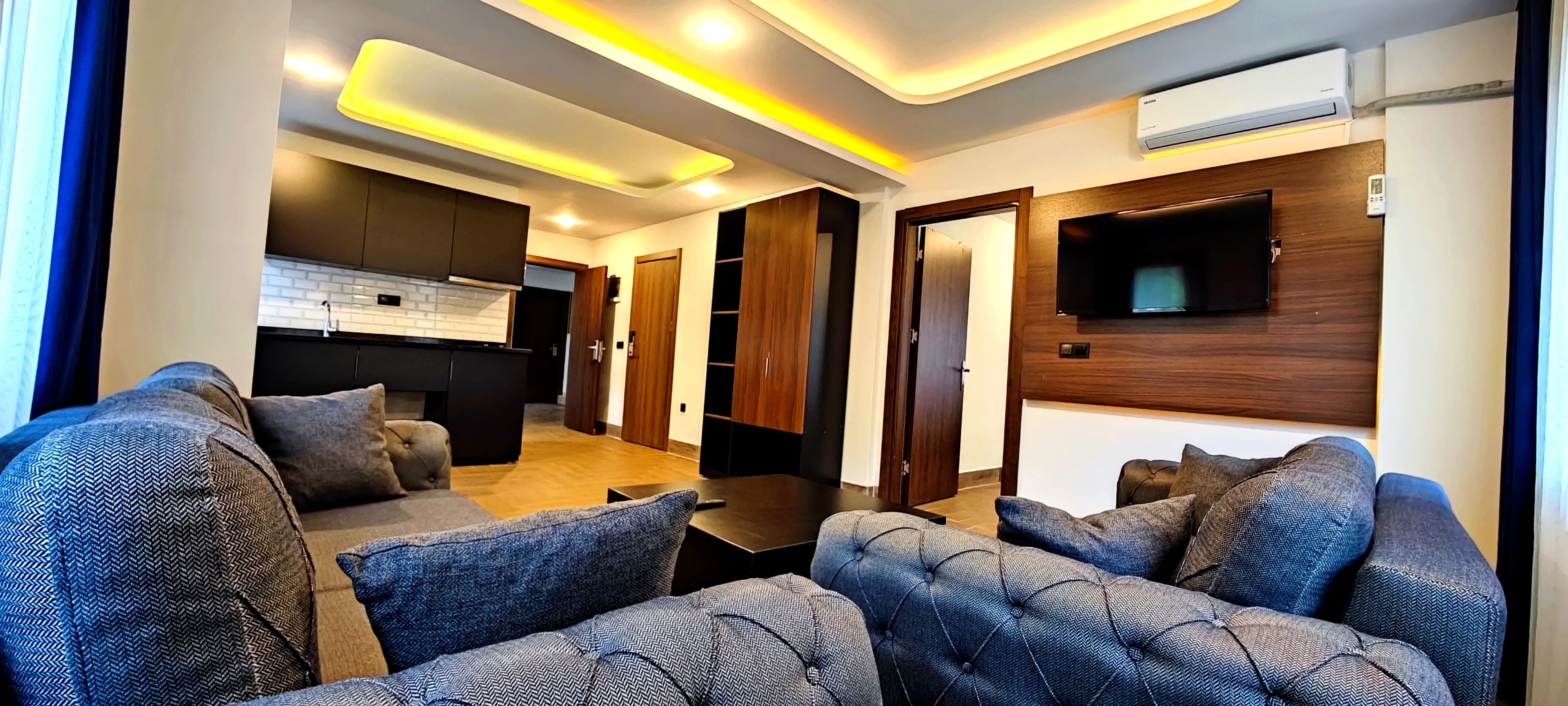 Ekonomi 1+1 Dört Kişilik odamız, aileler için konforlu ve kullanışlı bir konaklama alanı sunar. Ferah yapısı ile keyifli ve rahat bir tatil imkanı sağlar.