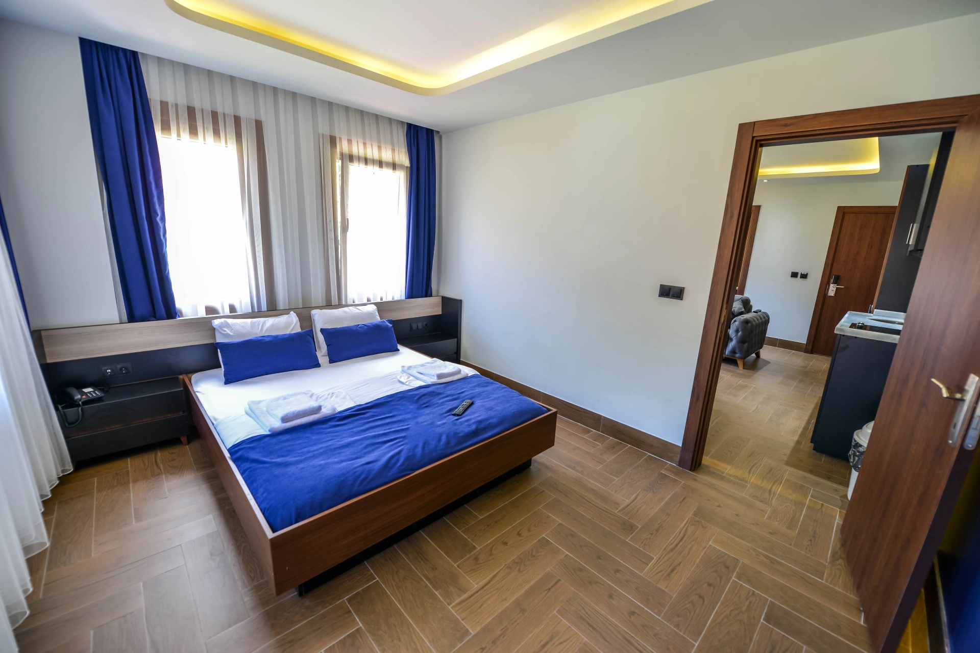 Standart 1+1 Suite odamız, modern tasarımı ve geniş yaşam alanı ile konforlu bir konaklama sunar. Hem dinlenmek hem de keyifli vakit geçirmek için uygundur.